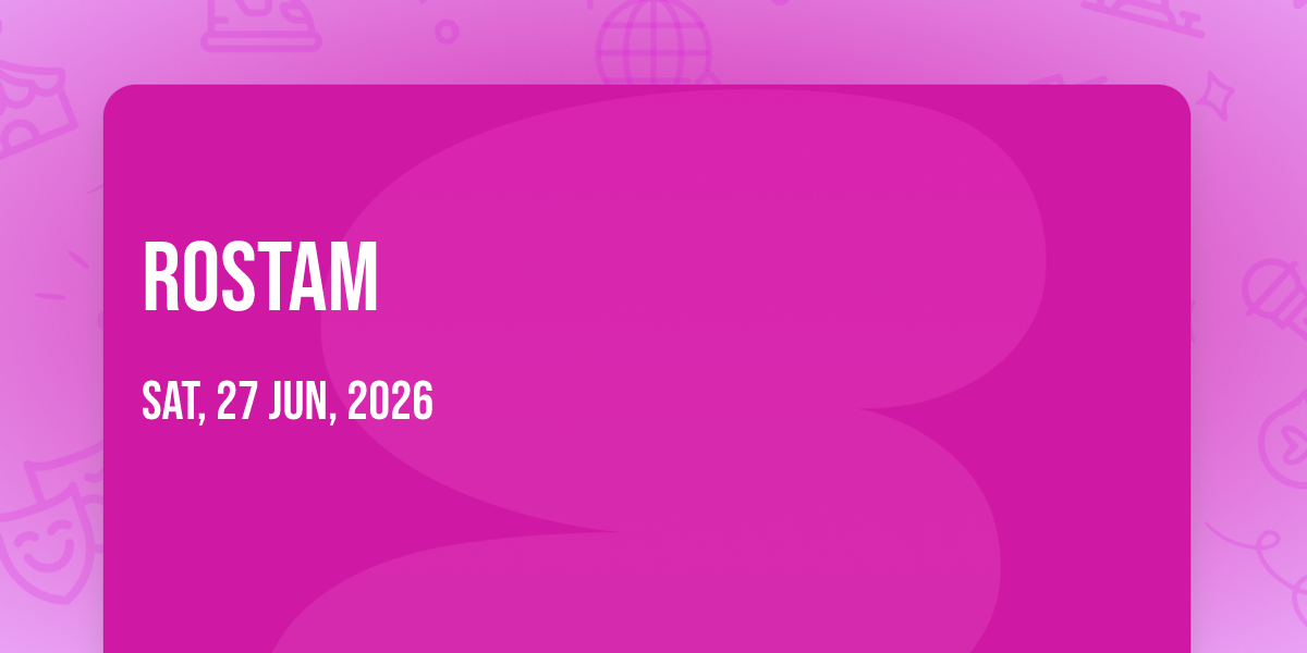 📍 Location: 30.2701, -97.7361🎉 Welcome to Rostam, where the impossible becomes possible and dreams take flight! 🏛️ Join us at Mohawk in the heart of Austin, TX for an event that will redefine your expectations. 📅 On June 27th, 2026 at 01:00 AM, witness the transformation of space and time into something truly magical. ✨ It's a curated experience combining the best of innovation, entertainment, and community spirit, creating moments that will be remembered for years to come. Whether you're a first-time visitor or a seasoned enthusiast, prepare to be amazed. 🎊 Book now to ensure your place in this unforgettable experience!
