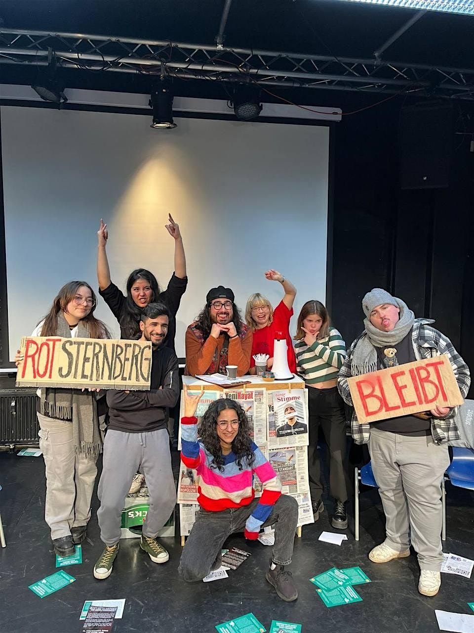 Das Theaterstück "Rotsternberg bleibt" behandelt die Zukunftsängste der unterschiedlichen Bewohner*innen des Stadtteils Rotsternberg vor dem Hintergrund steigender Mieten und sinkender Löhne. Während sie zunächst dabei zusehen müssen, wie ihr Viertel an Investor*innen verkauft wird und sie Stück für Stück dort verdrängt werden, beginnt eine Auseinandersetzung mit den Herausforderungen und Möglichkeiten von Solidarisierung und Widerstand.