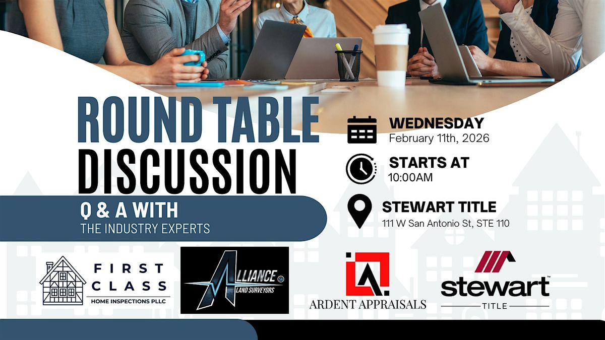 Join us for an exciting in-person event where you get to interact directly with top industry pros! We'll have a home inspector, an appraiser, and a representative from a land surveyor. Bring your questions and dive into a lively Q & A session that's all about learning, sharing, and networking. It's the perfect chance to gain insights, spark ideas, and connect face-to-face. Don’t miss out on this casual and engaging round table!