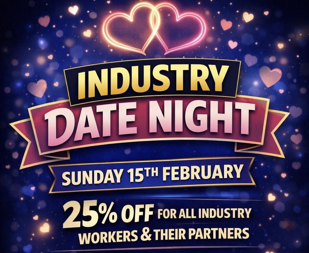 Join us on Sunday 15th February for a Valentine’s do-over made especially for industry workers and their partners.