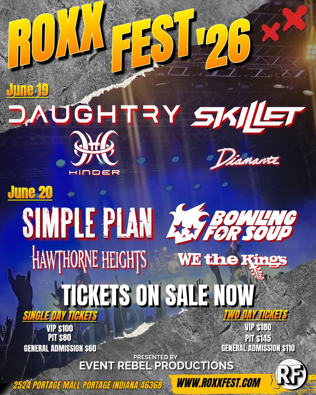 🌟 Step into a world of wonder at Roxx Fest: Daughtry Skillet & Hinder - Friday, where extraordinary moments await! 🏛️ Located at Portage Mall in dynamic Portage, IN, this event will become the talk of the town. 📅 Join us on June 18th, 2026 at 06:00 PM for a celebration that defies the ordinary. ✨ This curated experience brings together the best of entertainment, culture, and community spirit. Every detail has been thoughtfully planned to ensure an unforgettable experience for all our guests. 🎯 Take advantage of this opportunity to be part of something special. 🎊 Early registration is recommended as space is limited!http://maps.seatics.com/PortageMall_GAVIPPit_2026-01-19_2026-01-19_1120_01192026_113256_SVGC_tn.png