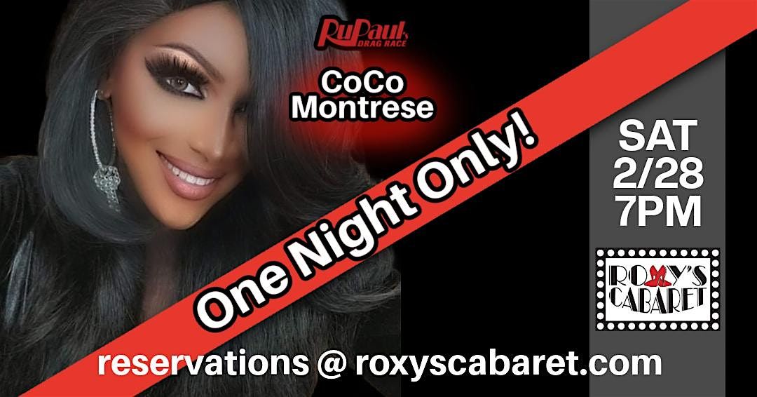 ✨ Get ready for a weekend of fabulousness with the stunning Coco Montrese, former Miss Gay America and star of RuPaul's Drag Race! 🎉 Prepare for an evening filled with glamour, thrilling performances, and Coco's exceptional talent and charm. Join us at Roxy's Cabaret for this unforgettable experience – you won't want to miss it! 💖 Mark your calendars for a night that promises to be spectacular!