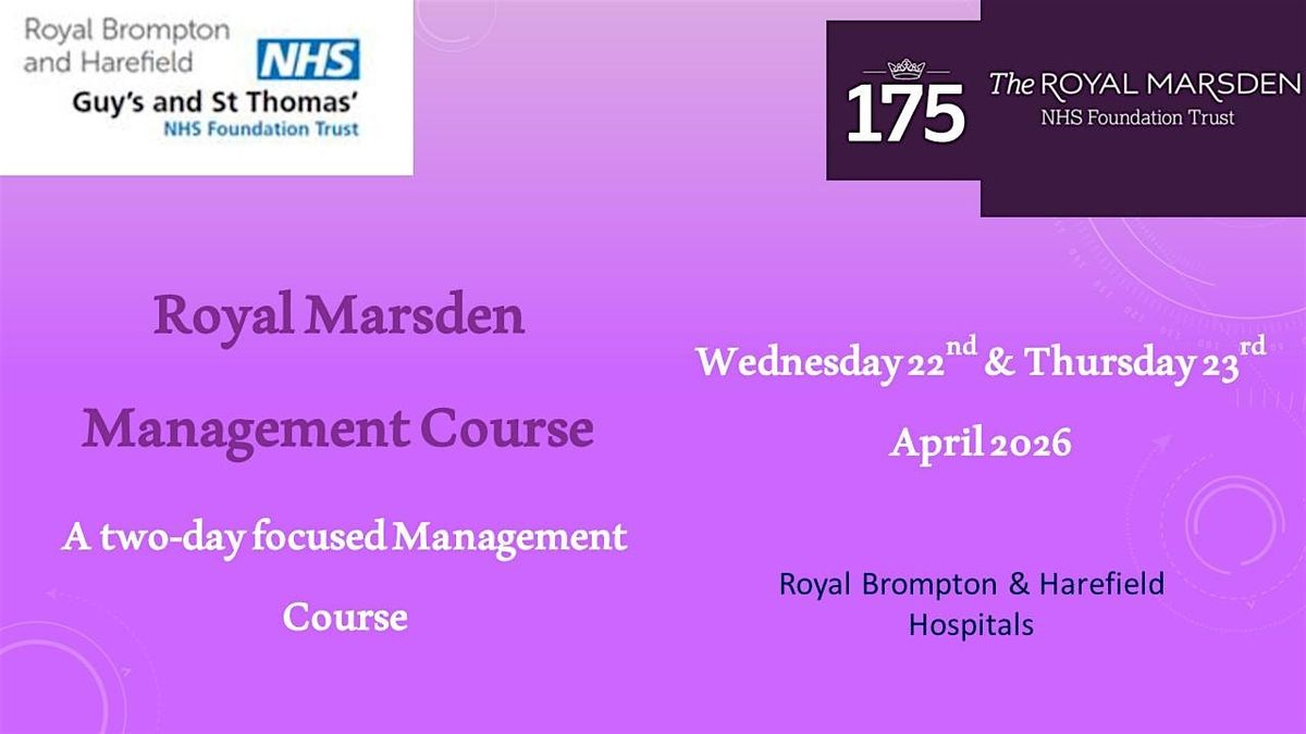 Welcome to the Royal Marsden Management Course happening at the Clinical Skills and Simulation Centre (CSSC) Royal Brompton Hospital on April Wednesday 22 & Thursday 23, 2025 - 8:00 AM - 6.00PM (Europe/London).