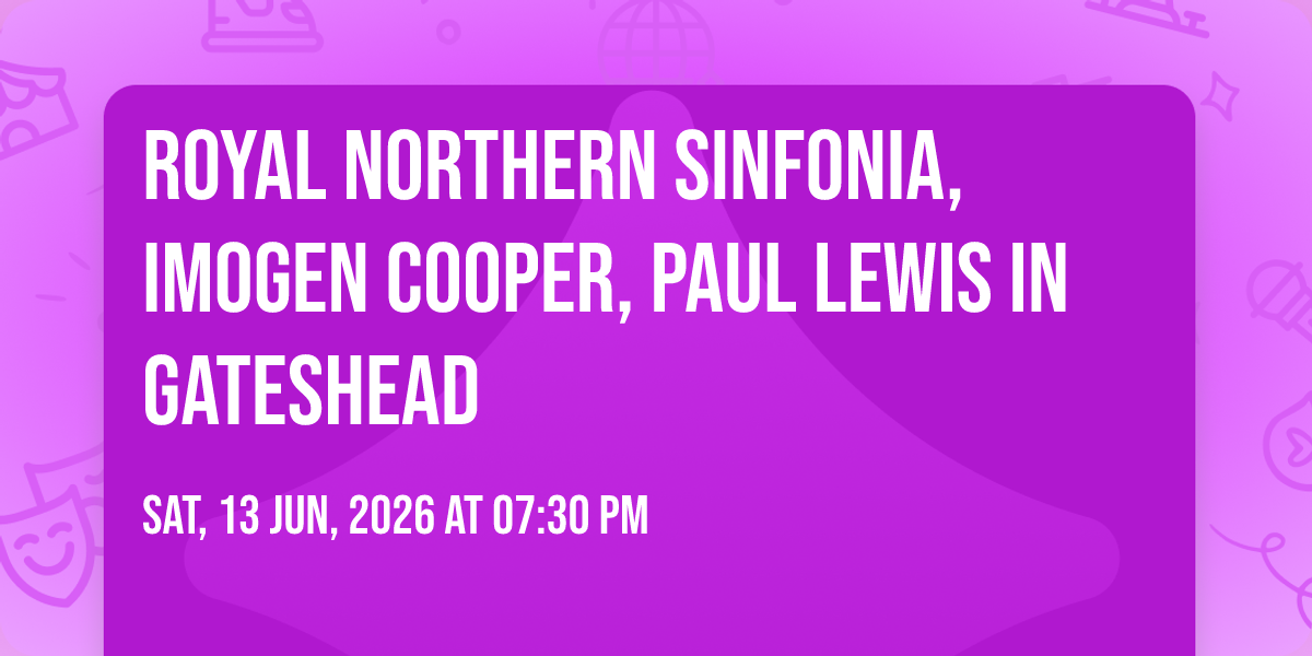 Tickets for Royal Northern Sinfonia, Imogen Cooper, Paul Lewis in Gateshead are going fast. Don't be the one who hears about it laterโgrab yours now and be part of an unforgettable night!