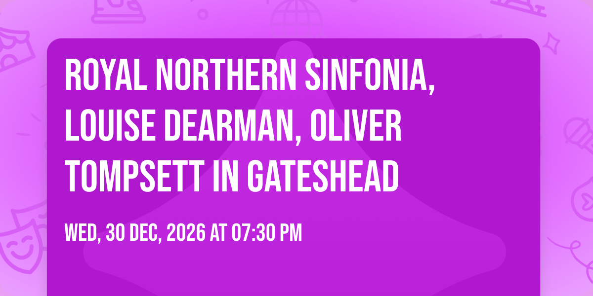 This is your chance to witness Royal Northern Sinfonia live and in their element. Grab your tickets now for Royal Northern Sinfonia, Louise Dearman, Oliver Tompsett in Gateshead at The Glasshouse and be part of a night that everyone will be talking about. Don't waitโtickets are selling fast.