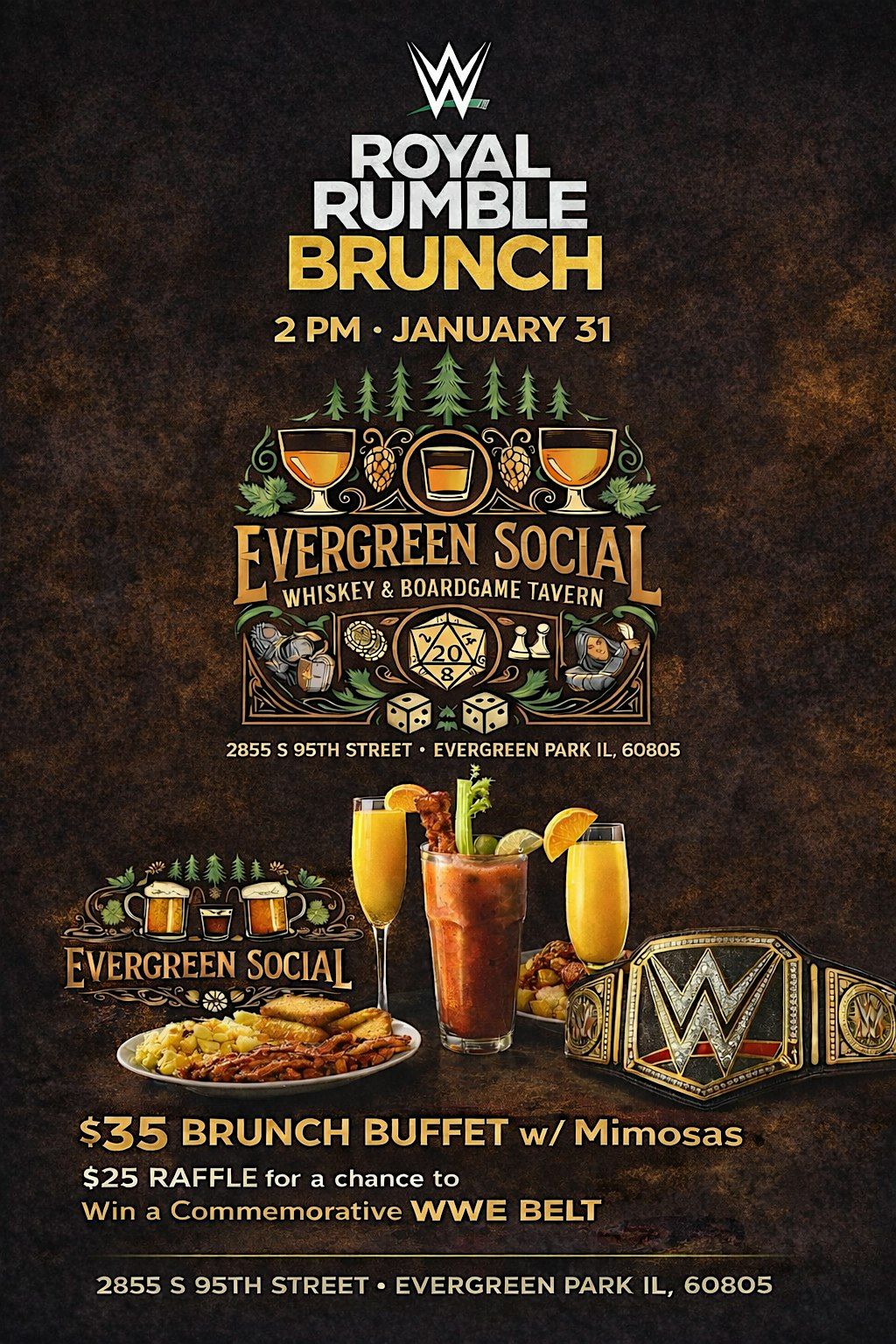 COME ENJOY A NICE BRUNCH AT EVERGREEN SOCIAL AND WATCH THE ROYAL RUMBLE!About this Event
