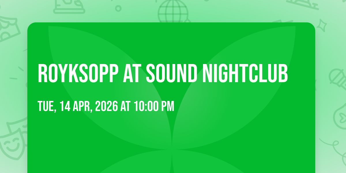 🎉 Welcome to Royksopp at Sound Nightclub, where the impossible becomes possible and dreams take flight! 🏛️ Join us at Sound Nightclub in the heart of Hollywood, CA for an event that will redefine your expectations. 📅 On April 14th, 2026 at 10:00 PM, witness the transformation of space and time into something truly magical. ✨ It's a curated experience combining the best of innovation, entertainment, and community spirit, creating moments that will be remembered for years to come. Whether you're a first-time visitor or a seasoned enthusiast, prepare to be amazed. 🎊 Book now to ensure your place in this unforgettable experience!