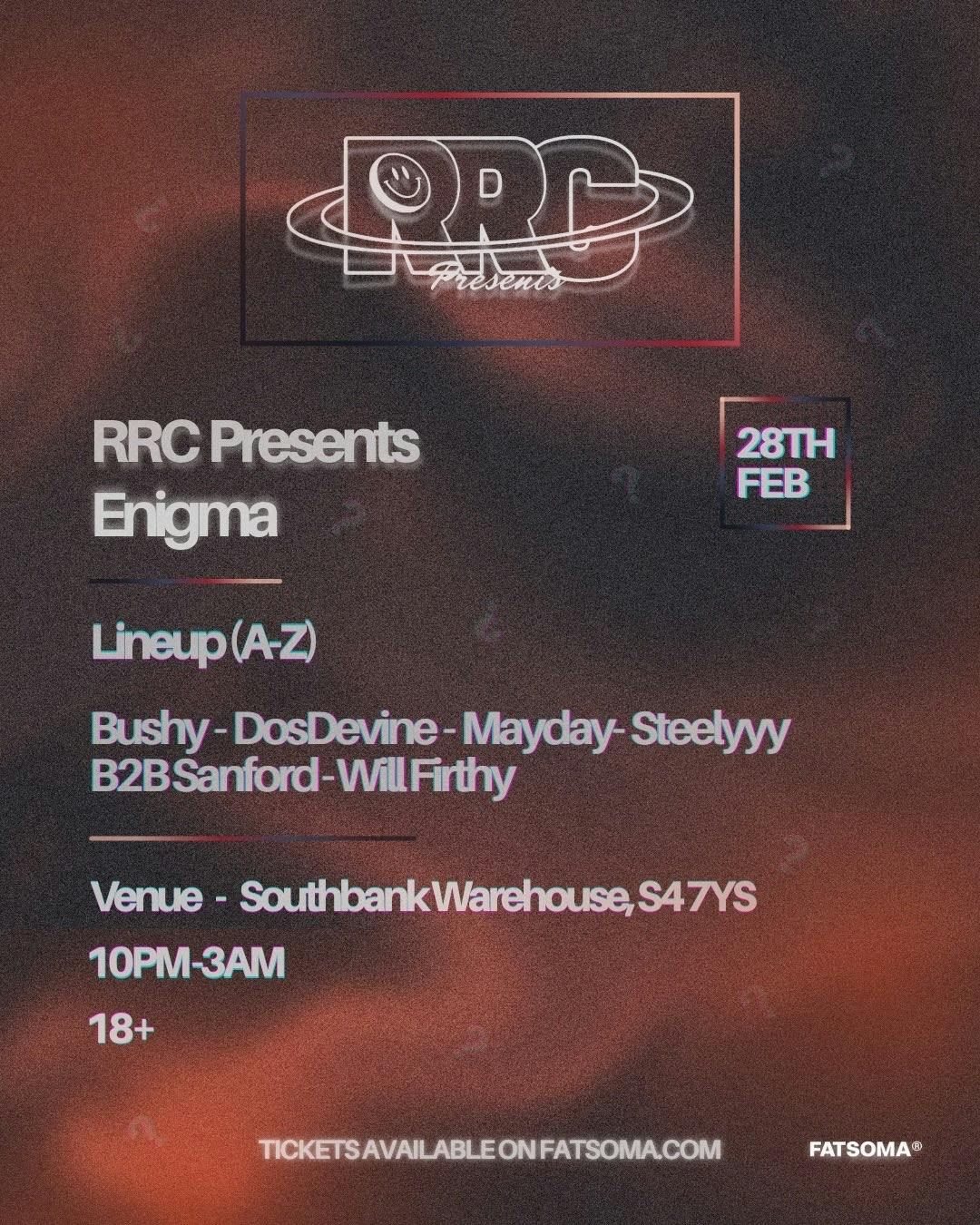 The RRC is returning with your first event of 2026. For this one we are pleased to showcase our concept, Enigma which is all about mystery and the unknown, at first the venue and lineup will be hidden and all will be revealed slowly in the buildup to the event. This is not one to be slept on so join us on the 28th of February for the best house music party in townCOME DISCOVER THE UNKNOWN