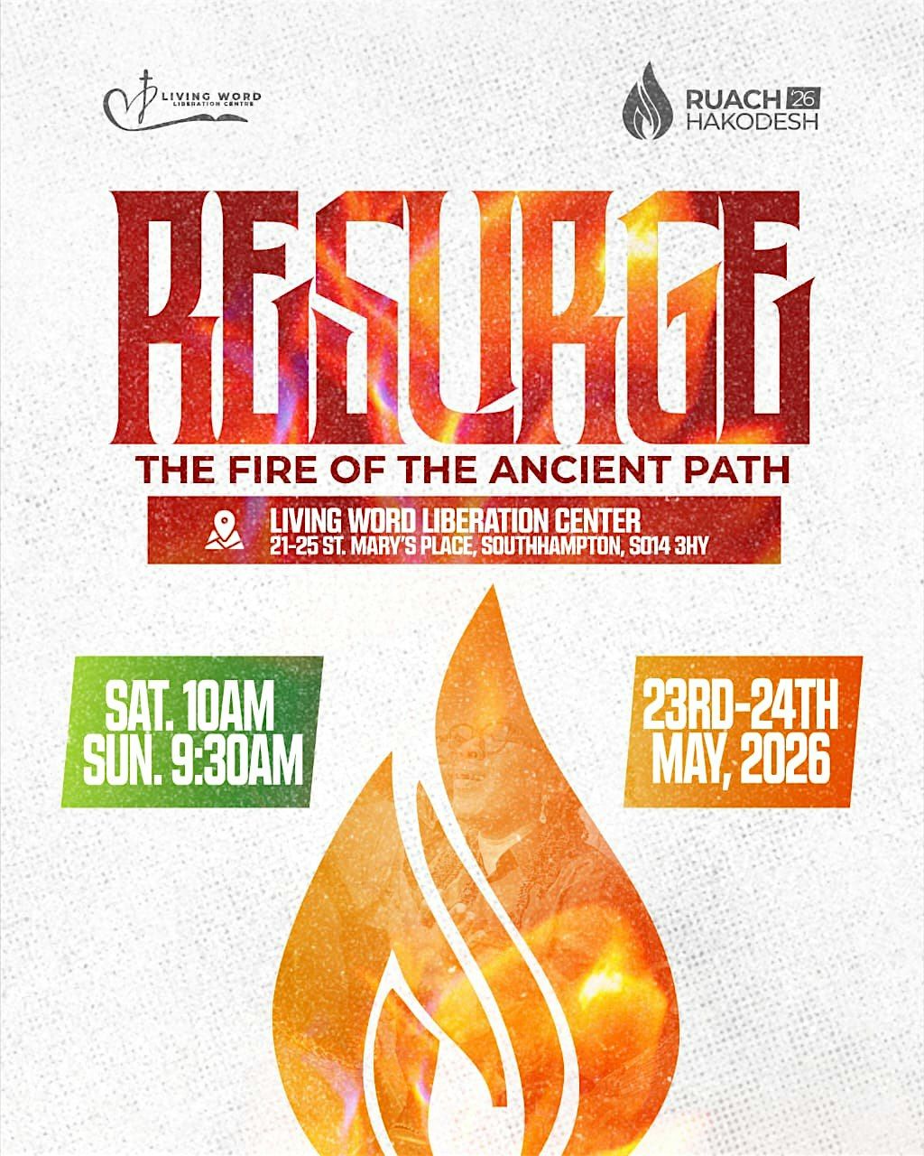 The Fire and Resurge themes point toward an environment designed for spiritual renewal, deep prayer, and personal breakthrough