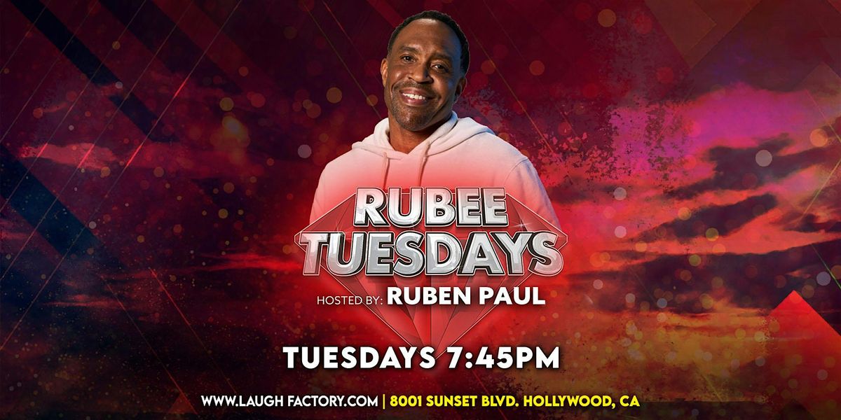 Rubee Tuesdays with Ruben Paul brings top comics every Tuesday. Catch GOATs up close or discover the next big star at Laugh Factory.