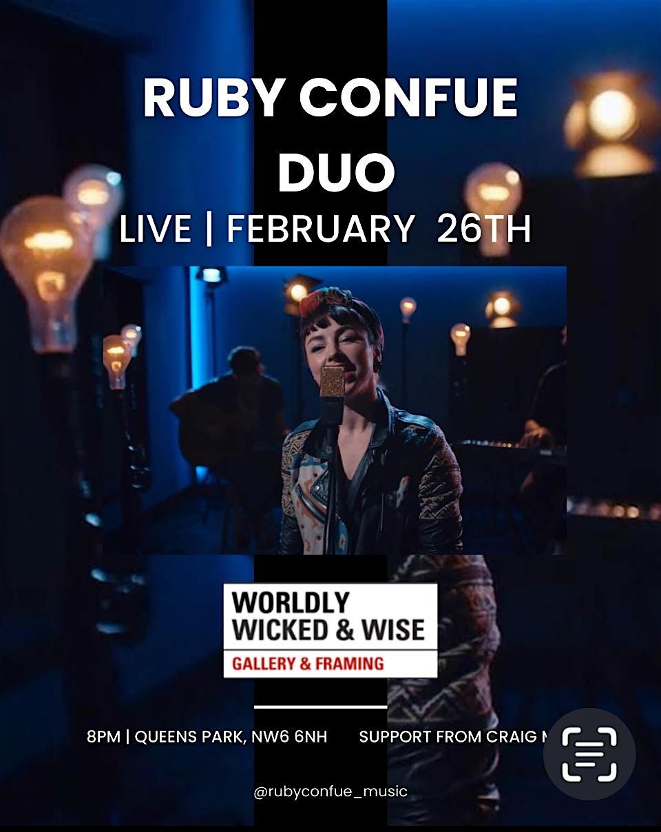 Ruby Confue live in a gorgeous art gallery setting. Expect soulful jazz, vocals. Singing 90’s classics with jazz / acoustic guitar.