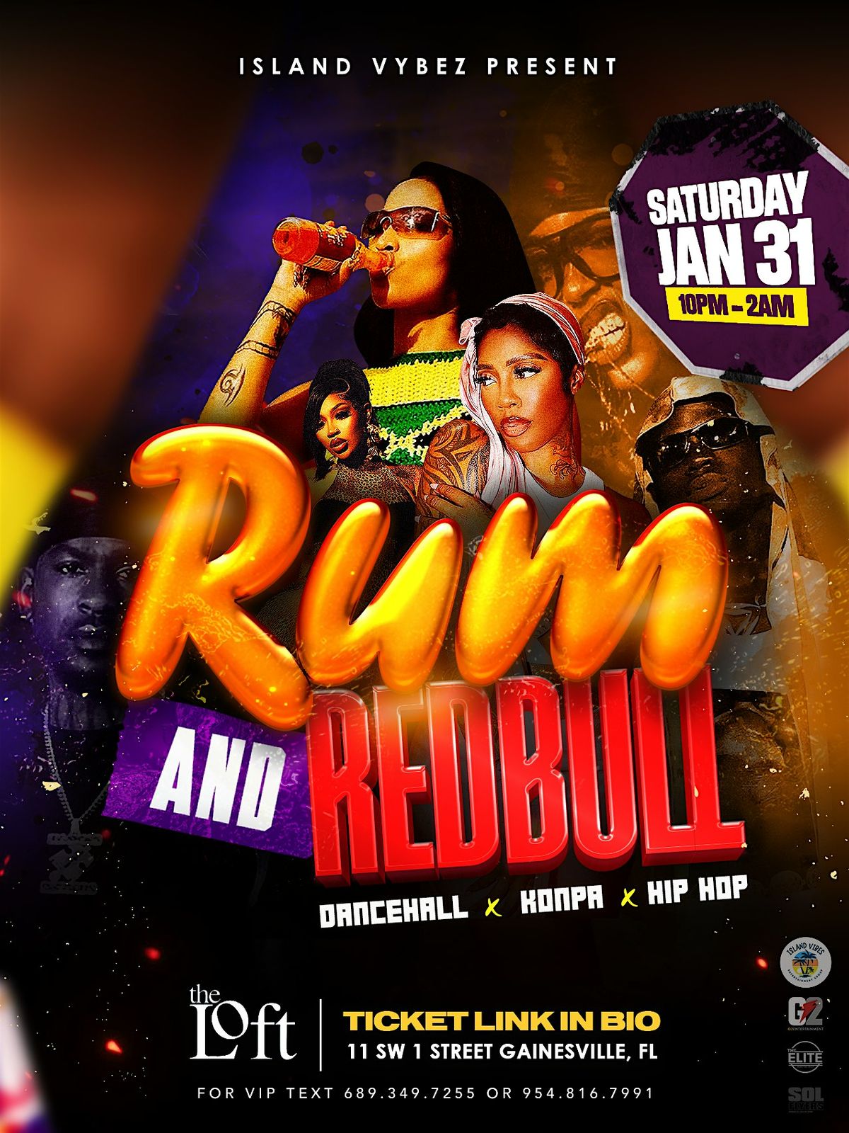 JOIN US ON SATURDAY JAN 31ST FOR RUM & REDBULL... DANCEHALL VS TRAP EDITION @ THE LOFT