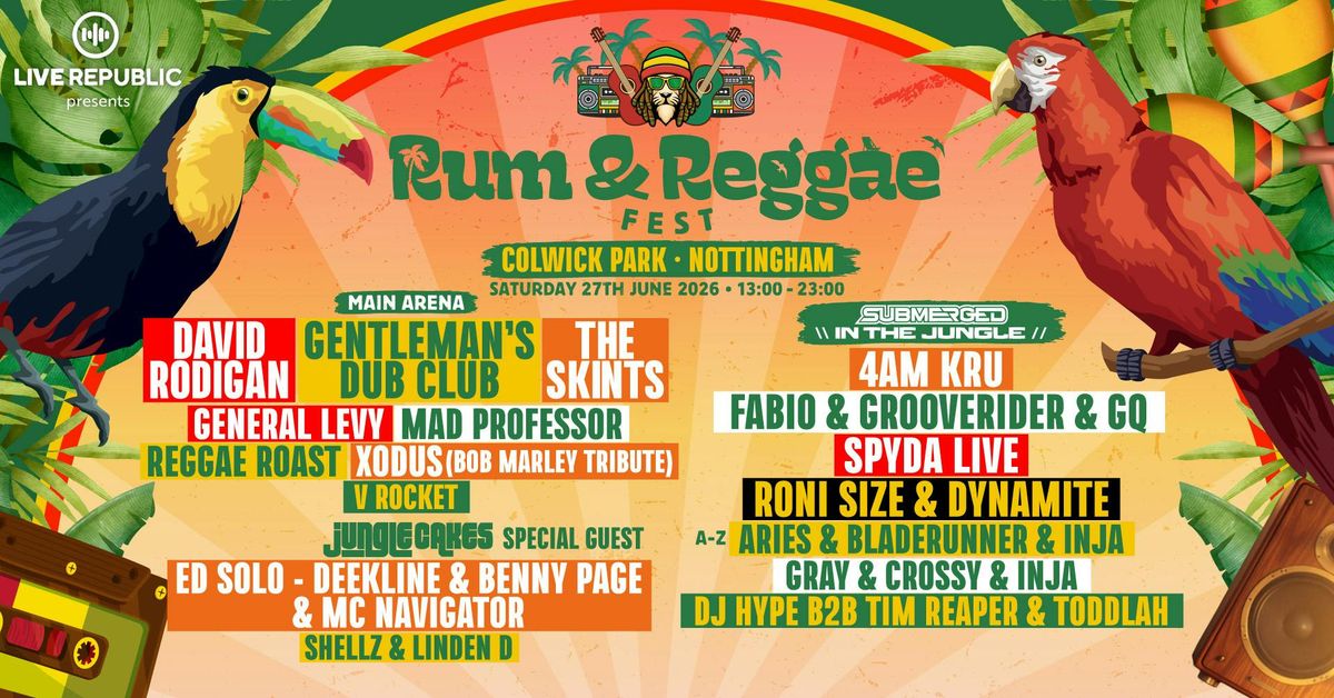 Saturday, 27th June 2026, Colwick Park transforms into a full-scale tropical paradise as Rum & Reggae Fest returns BIGGER, BOLDER, and more vibrant than ever before with TWO electrifying stages of pure island energy!