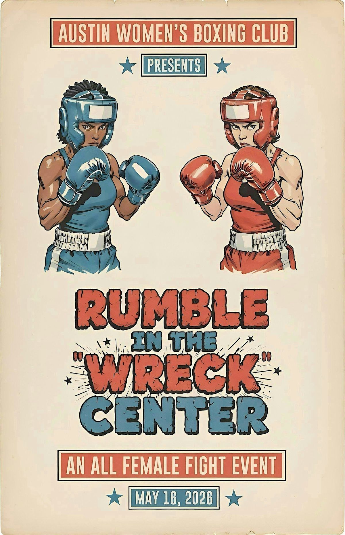 Austin Women's Boxing Club presents Rumble in the Wreck Center β Austin's first all female fight show. Sanctioned bouts, real competitors, and a room full of people who showed up to watch women fight.