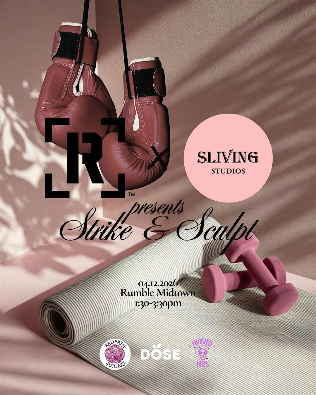 *Please note: Photo and video content may be captured during the event and used to promote future Sliving Pilates or Rumble experiences. By purchasing a ticket, you consent to the possibility of appearing in this content.