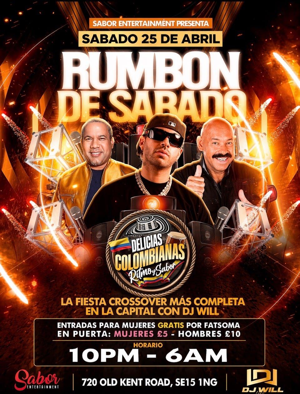 SABOR ENTERTAINMENT Se Complace En Presentar El RUMBON DE SABADO En RITMO Y SABOR!Ven A Disfrutar De Una Noche Full CrossOver Con La Mejor Salsa, Merengue, Bachata, Reggaeton, Dembow Y Que No Falte El Despecho!