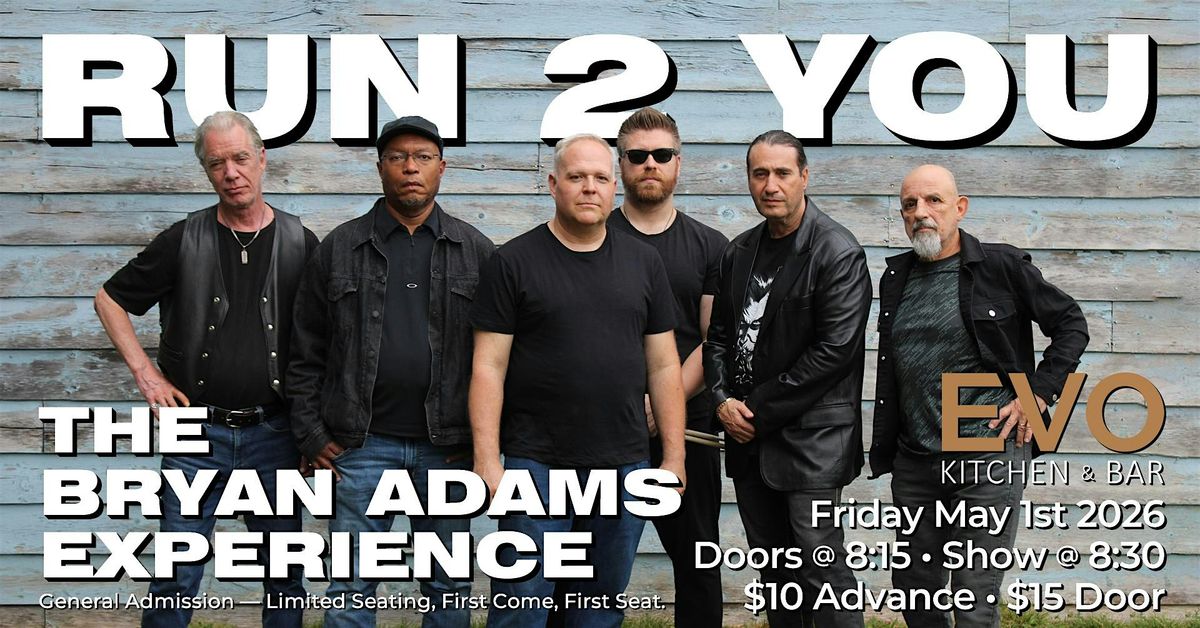 🎸🔥 Run 2 You: The Bryan Adams Experience is coming to EVO Kitchen & Bar on Friday May 1st! 🔥🎸