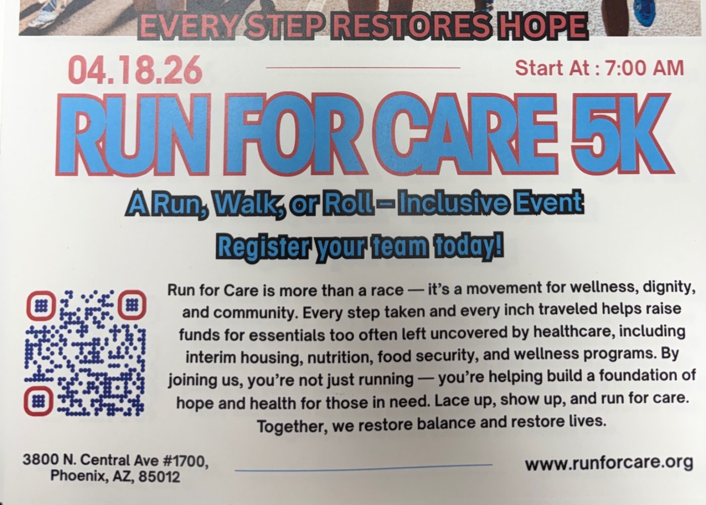 Run for care is more than a race. It’s a movement for wellness, dignity and community. Every step taken and every inch traveled helps raise funds for essentials too often left uncovered by healthcare, including inteirm, housing nutrition, food, security, and wellness programs. By joining us you’re not just running you’re helping build a foundation of Hope and health for those in need. Lace up, show up and run for care together we restore balance and restore lives.