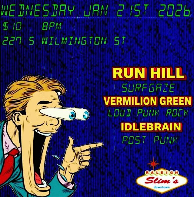 January 21st, 8pm, performing at Slim’s is Run Hill (surfgaze), Vermilion Green (loud punk rock), and Idlebrain (post punk)!