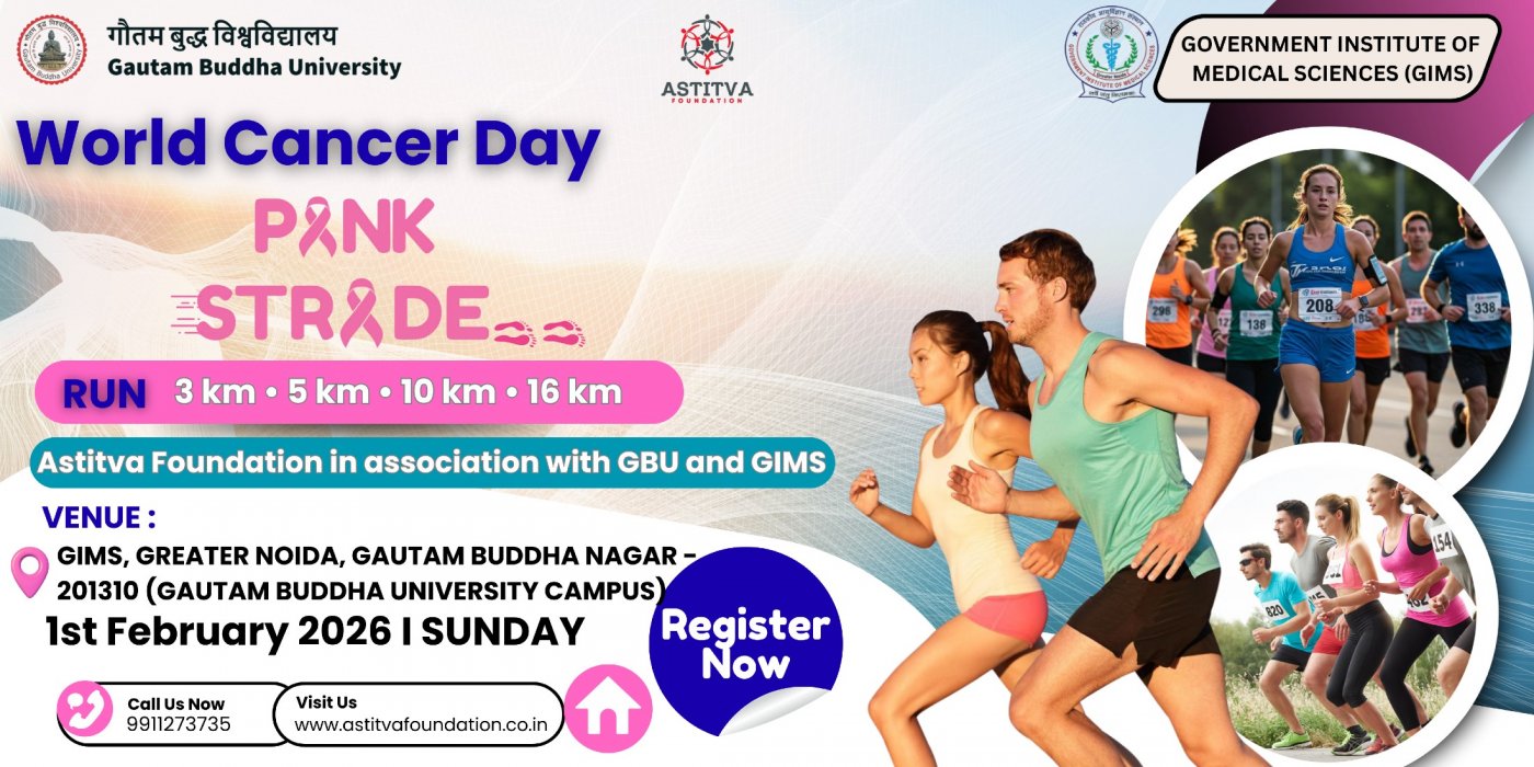 Run to Save Lives in association with Government Institute of Medical Sciences (GIMS) & Gautam Buddha University (GBU) is a flagship cancer awareness run organized on the occasion of World Cancer Day, aimed at uniting communities for a powerful cause — cancer prevention, early detection, and patient rehabilitation.