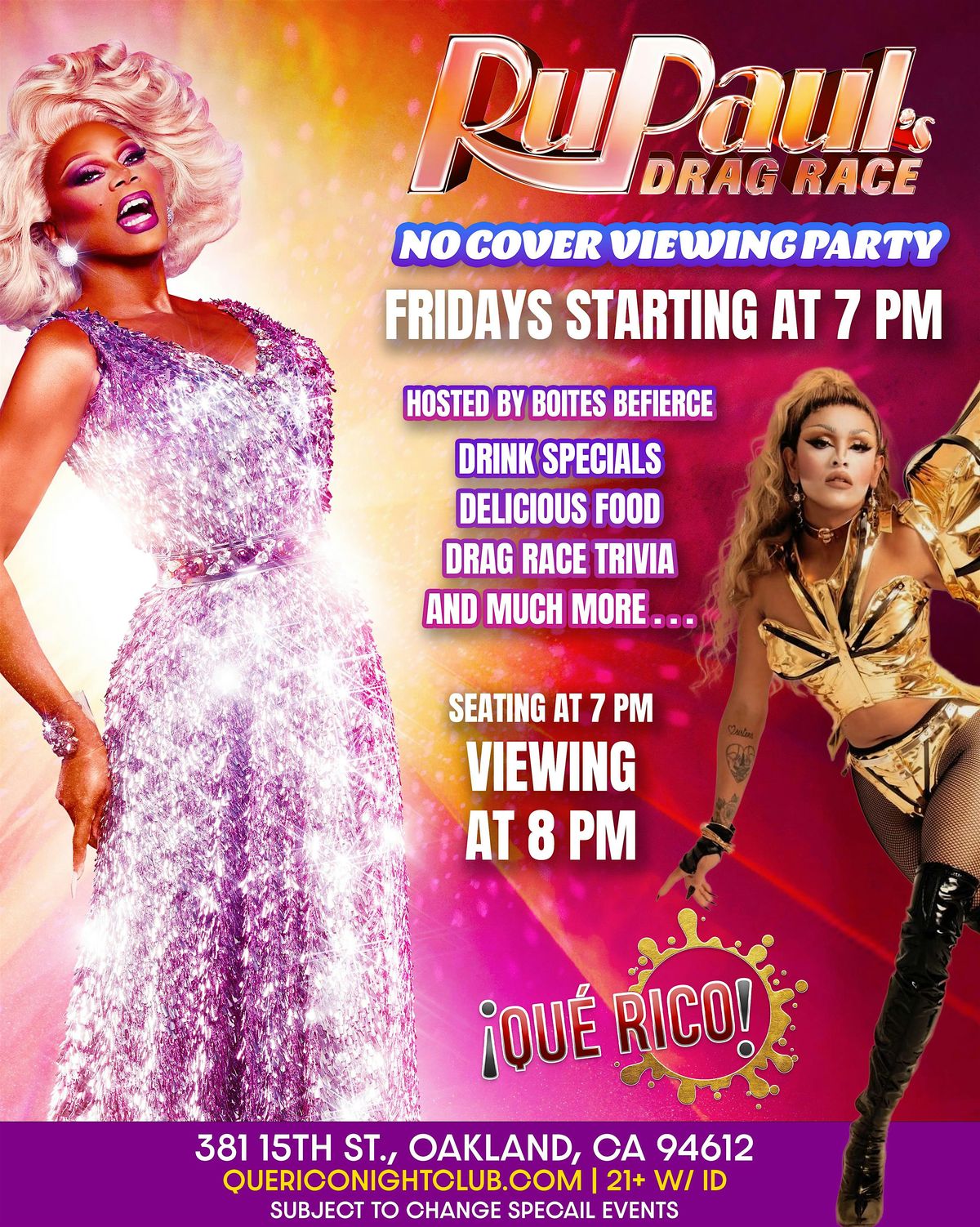 Join us Friday Night at Que Rico as we watch RuPaul's Drag Race hosted by Boites Befierce.About this Event