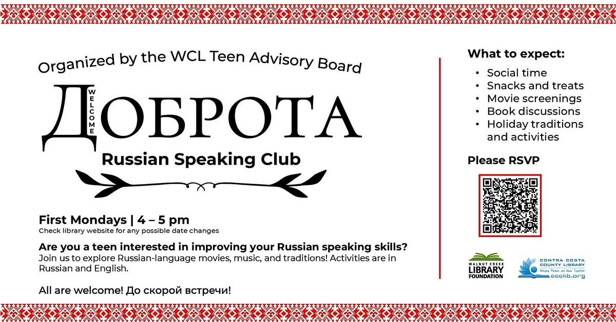 Join us to explore Russian-language movies, music, and traditions! Activities are in Russian and English.