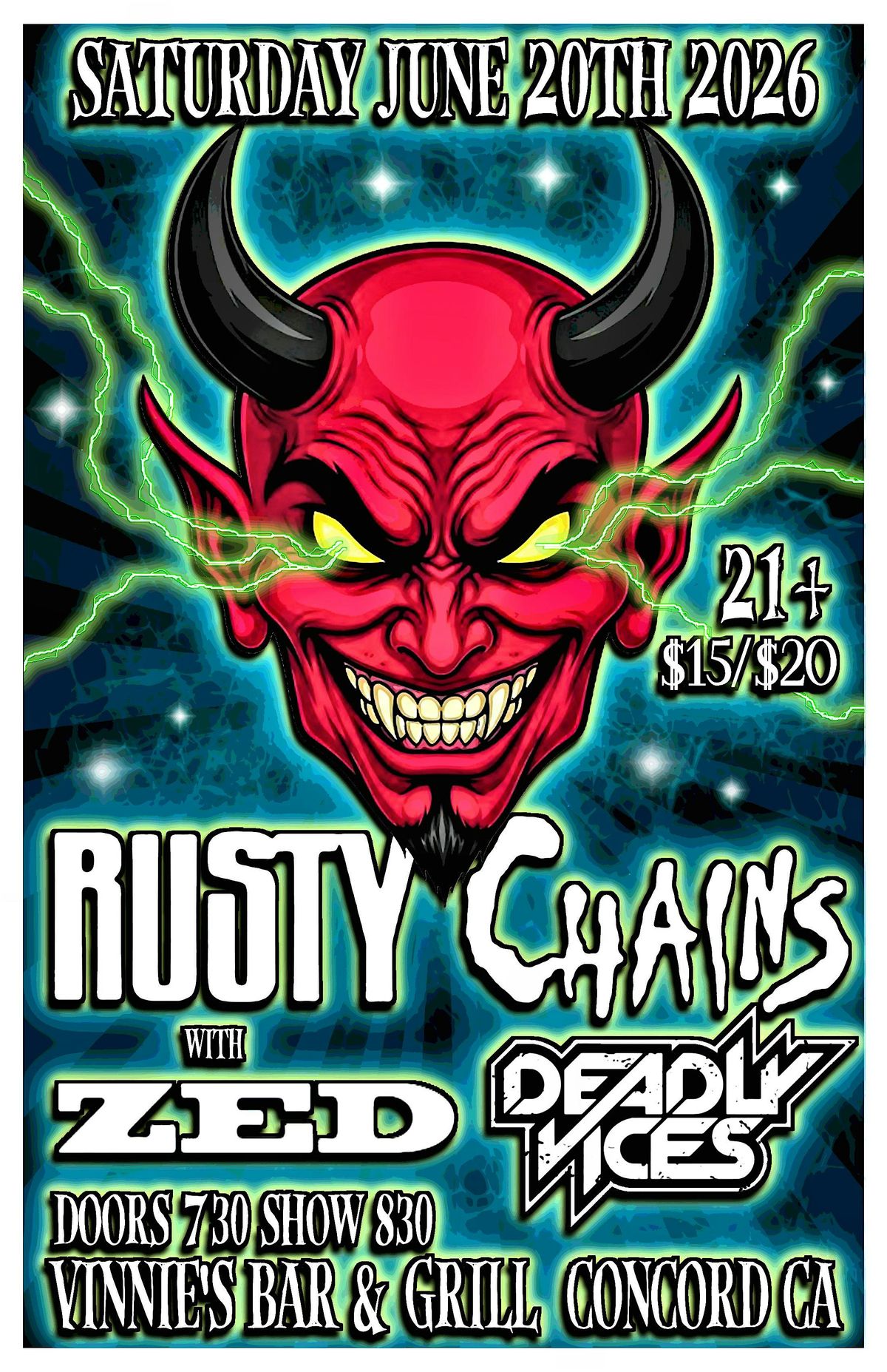 Get ready to break free from Rusty Chains~ZED~Deadly Vices with wild beats and killer vibes in person!About this Event