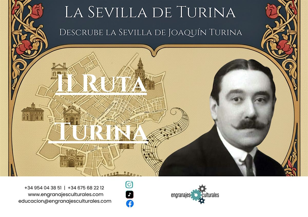 Engranajes Culturales se complace en anunciar una serie de Paseos Musicales inéditos dentro del marco de la II Ruta Turina, una propuesta única que invita a sevillanos y visitantes a sumergirse en la vida y obra del insigne compositor Joaquín Turina Pérez. Con motivo del 135 aniversario de su nacimiento, estos paseos ofrecen una perspectiva íntima de la Sevilla que inspiró a uno de los máximos exponentes del nacionalismo musical español.