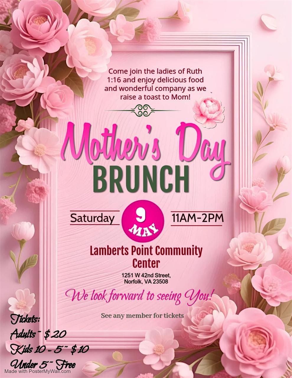 Come join the ladies of Ruth 1:16 and enjoy delicious food and wonderful company as we raise a toast to Mom!