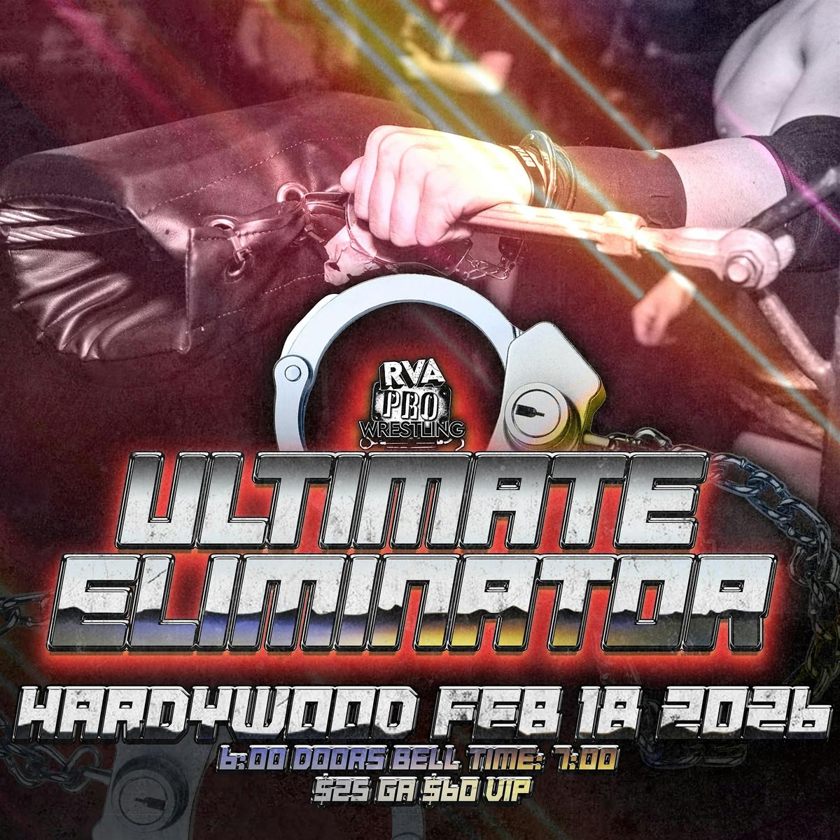The RVA Pro Wrestling men's and women's championship will be defended in a men's and a womens Ultimate Eliminator match! Sledge Gibson will defend the RVA Pro Wrestling Heavyweight Championship against five other men in an Ultimate Eliminator match! Erica Leigh will also be defending her RVA Pro Wrestling Women's Championship in an Ultimate Eliminator Match.