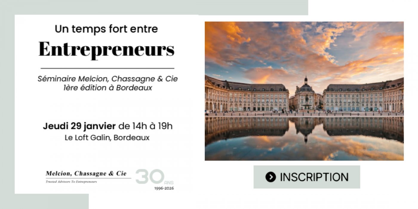Pour célébrer nos 30 ans, Melcion, Chassagne & Cie organise son 1er séminaire Bordelais qui se tiendra le jeudi 29 janvier prochain de 14h à 19h au Loft Galin.