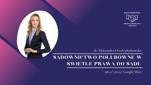 Serdecznie zapraszamy na spotkanie merytoryczne Koła Naukowego Mediacji, Negocjacji i Arbitrażu. Podczas spotkania pochylimy się nad zagadnieniem sądownictwa polubownego, ze szczególnym uwzględnieniem arbitrażu, w świetle zasady prawa do sądu. Postaramy się również odpowiedzieć na pytanie, czy cechy, którymi charakteryzuje się sąd polubowny wypełniają przesłanki rozumienia pojęcia "sądu" w znaczeniu konstytucyjnym. ⚖️