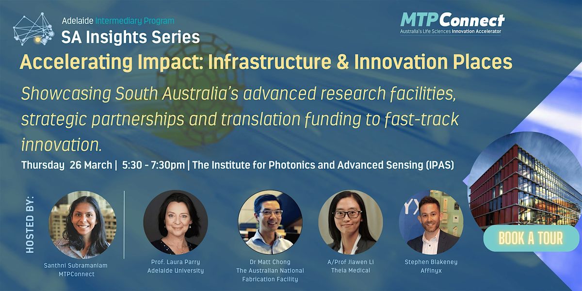 Join MTPConnect's Industry Development Officer, Santhni Subramaniam, for an SA Insights fireside chat and networking evening exploring how South Australia’s innovation infrastructure and places accelerate research translation and industry collaboration.