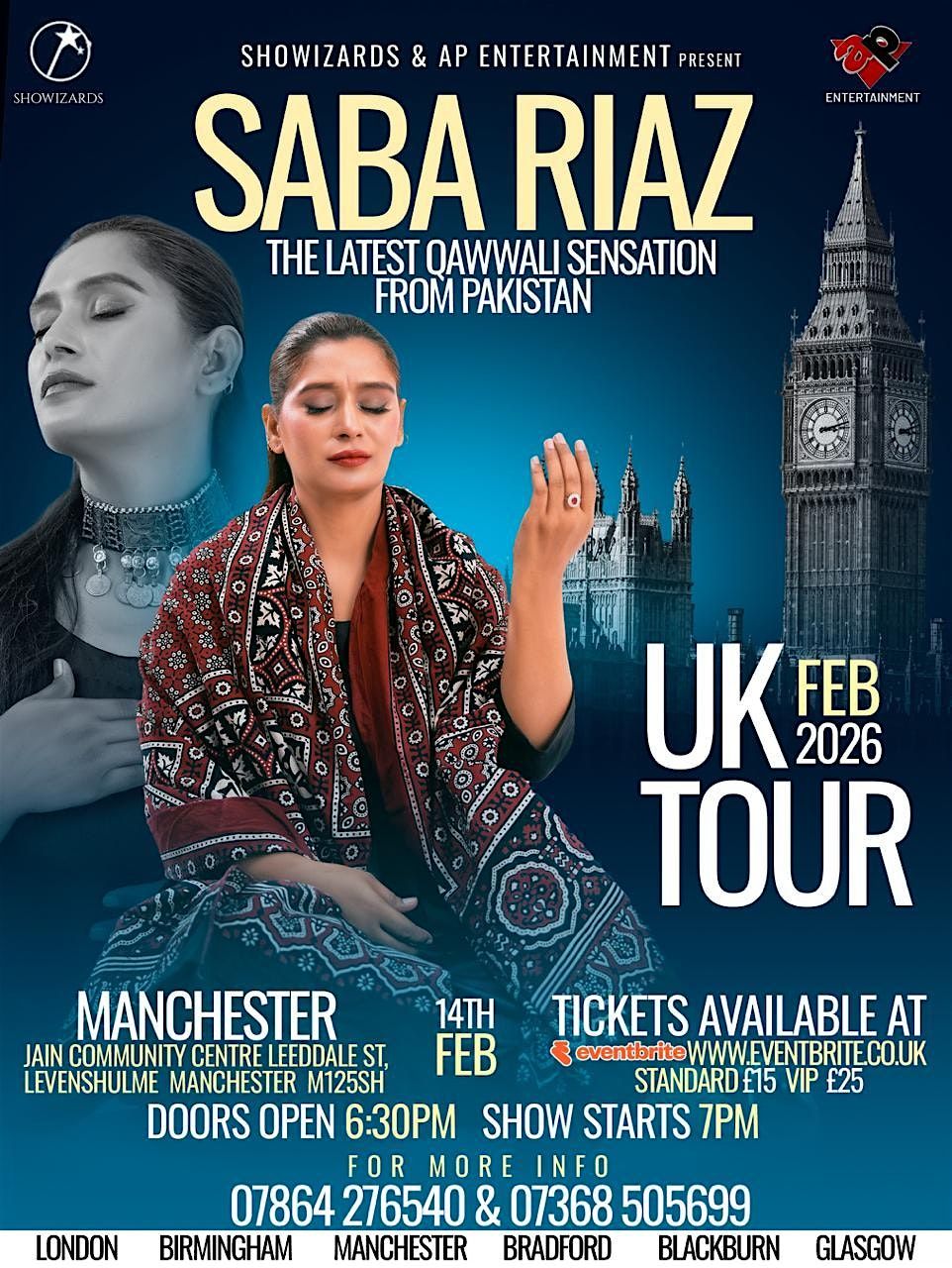 Saba Riaz is the latest Qawwali sensation from Pakistan. She is coming to Blackburn to perform some of the greatest Qawwalis and sufiyaana songs. Do not miss this amazing event