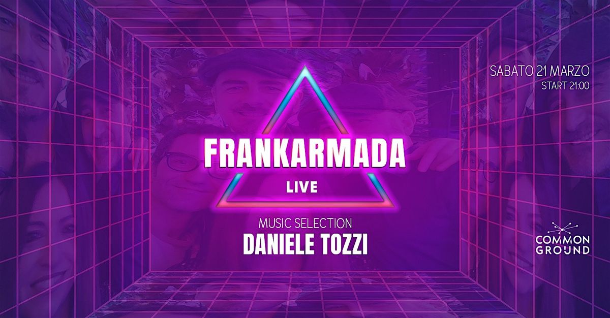 Sabato 21 Marzo Discoring80's al Common Ground col Live dei Frankarmada, Daniele Tozzi Dj.Cena 25€, drink 15€, FREE entro le 22,30 qui.
