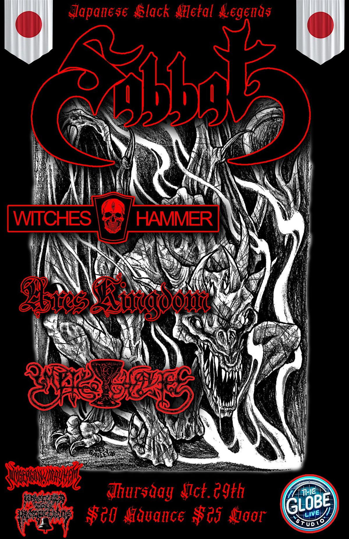 Making their Western Canadian debut are Japanese Black Metal Legends Sabbat all the way from the land of the rising sun! With direct support from Ares Kingdom (Kansas) Witches Hammer, and Empty Chalice