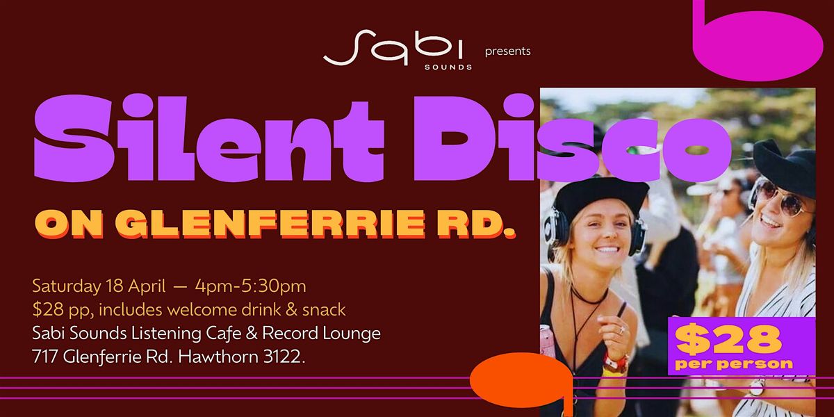 Join us for the Sabi x Silent Disco Walking Tours, where we take to Glenferrie Road wearing wireless headphones and dancing through the streets together (duration 30 mins). Everyone hears the same uplifting playlist of 70s, 80s and 90s classics, along with playful commentary from the guide leading the experience.