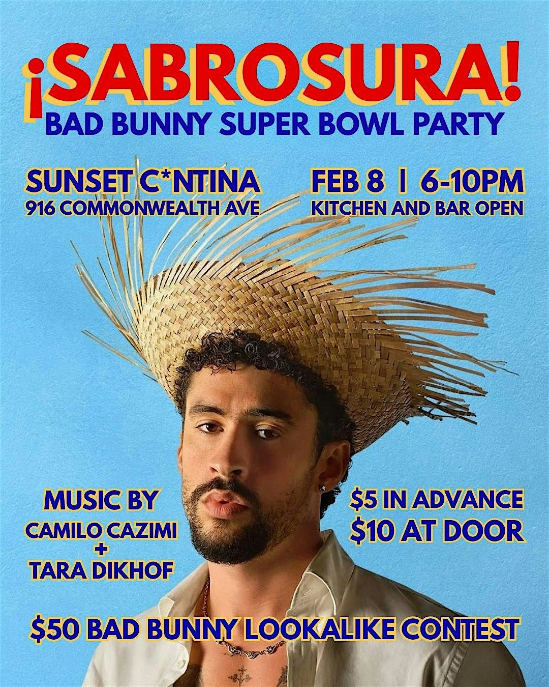 $50 Bad Bunny lookalike contest for best dressed at 7 pm!