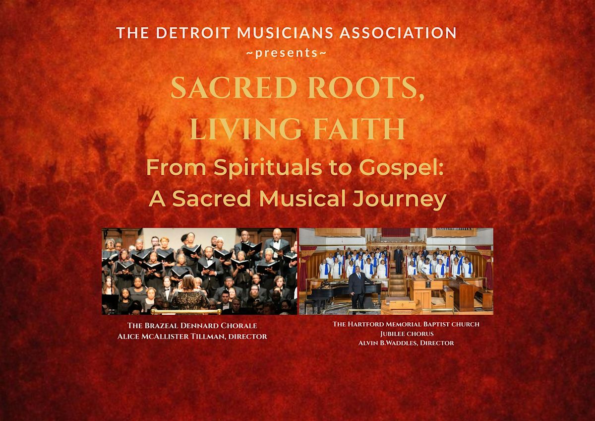 Presented by the Detroit Musicians Association, the concert features the Brazeal Dennard Chorale, directed by Alice McAllister Tillman, alongside the Hartford Memorial Baptist Church Jubilee Chorus, under the direction of Alvin B. Waddles. Together, these distinguished ensembles bring depth, tradition, and artistry to a repertoire rooted in history and alive with meaning today.