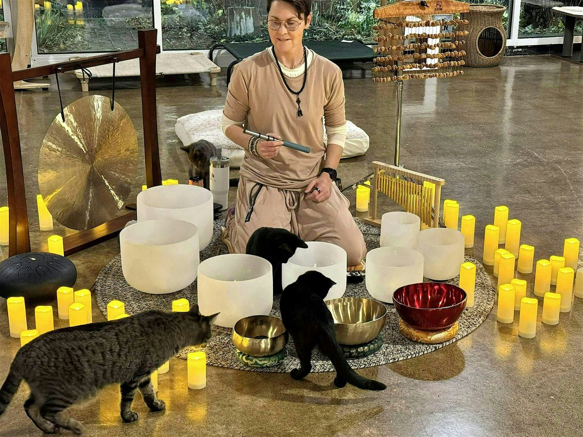 Are current events stressing you out? Join sound alchemist Kathryn Watterson and 35 cats in Catfé Lounge for 90 minutes of sound healing using Tibetan bowls, gongs and chimes.
