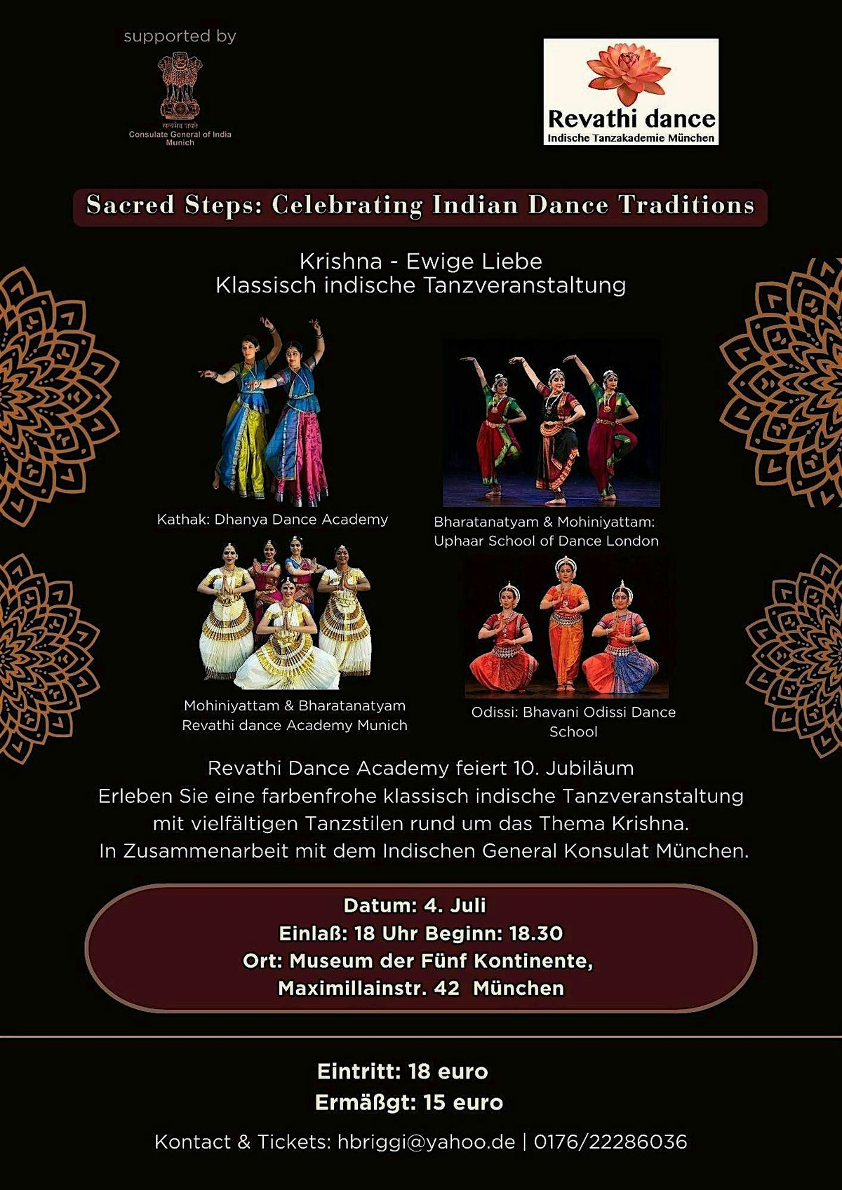 Erleben Sie eine farbenfrohe, klassisch-indische Tanzveranstaltung (Bharatanatyam, Odissi, Kathak, Mohiniyattam) Rund um das Thema Krishna.