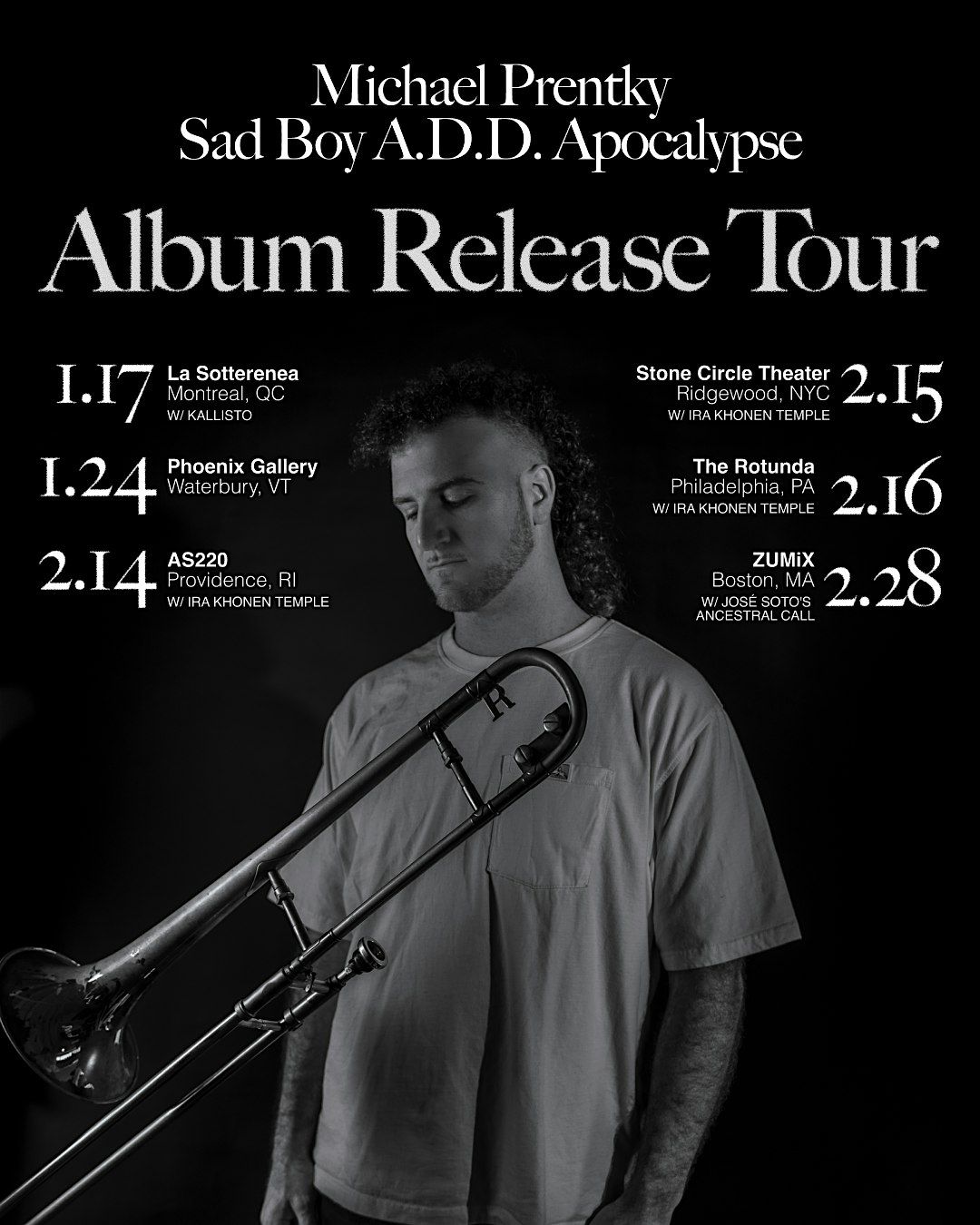 Don't miss this rare show with orchestra, improvisation, poetry, projections, and two bands like nothing you've heard live. There will be dancing, singing and catharsis. Prentky is releasing his debut album and will be supported by Costa Rican experimental pianist Jose Soto and the Ancestral Call.