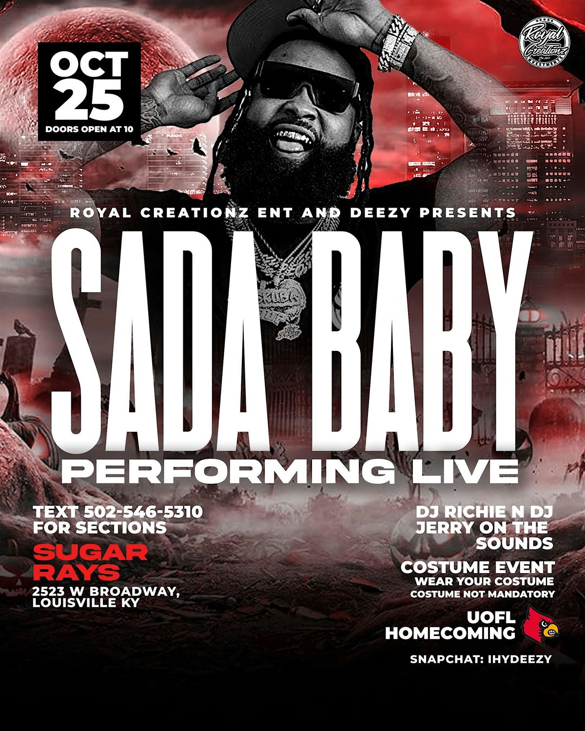 UofL official homecoming Halloween bash. Sada baby performing live October 25th @ sugar rays