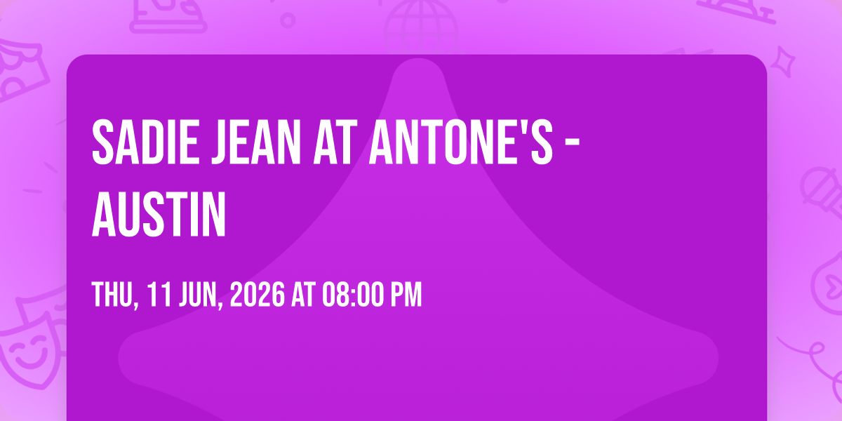 ✨ Experience the magic of Sadie Jean at Antone's - Austin, where moments become memories that last a lifetime! 🏛️ The iconic Antone's - Austin in Austin, TX sets the perfect stage for an unforgettable celebration on June 11th, 2026 at 08:00 PM. 🌟 It's been a curated experience that brings together the best of entertainment and innovation, creating an atmosphere of wonder and excitement. From the moment you arrive, you'll be immersed in a world where the ordinary transforms into the extraordinary. 🎊 Book early to secure your place in what promises to be an event that will be talked about for years to come!