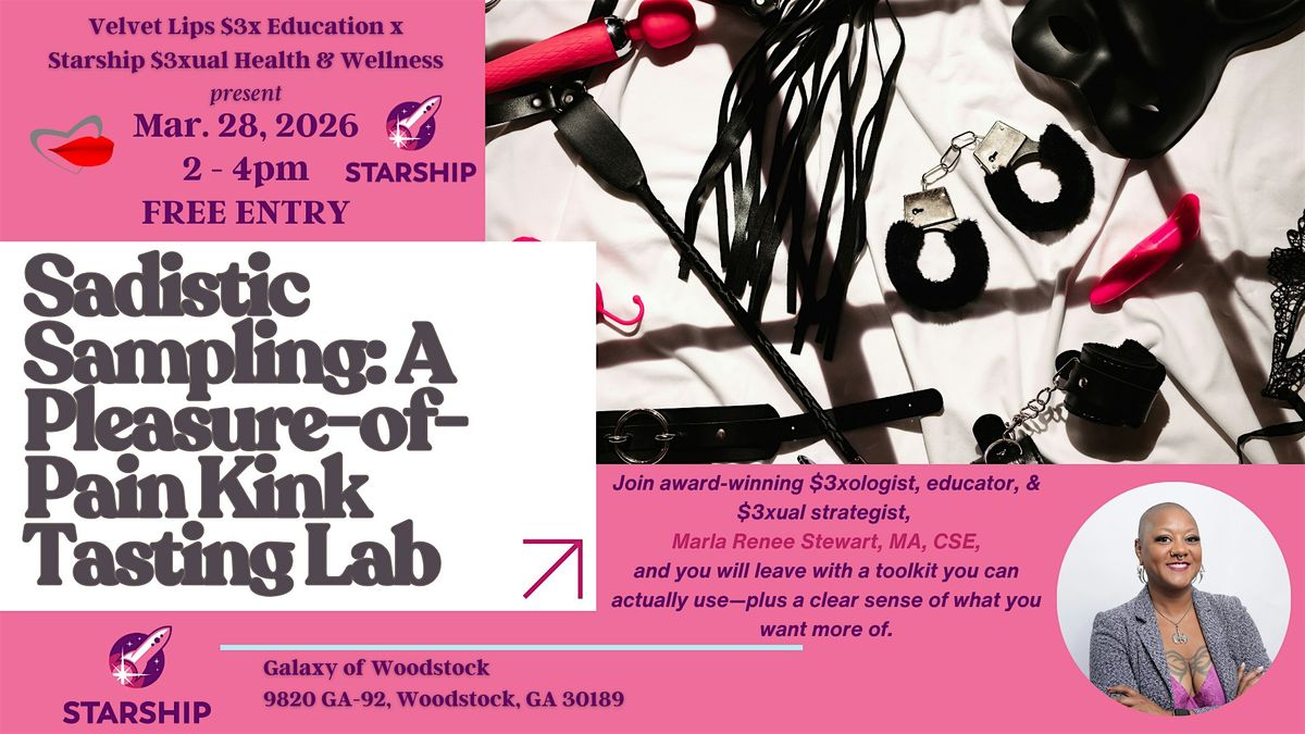 In Sadistic Sampling, you’ll explore what “good pain” can feel like across the body and the mind. This is a guided tasting lab designed to help you identify your preferences, boundaries, triggers, and turn-ons in a structured, consent-forward environment. We’ll cover the foundations of impact and sensation play (including safety, body targeting, intensity building, tool selection, and rhythm), and we’ll also explore the psychological edge—like degradation, humiliation, and power-forward language—through explicit consent practices, emotional safety, and robust aftercare.