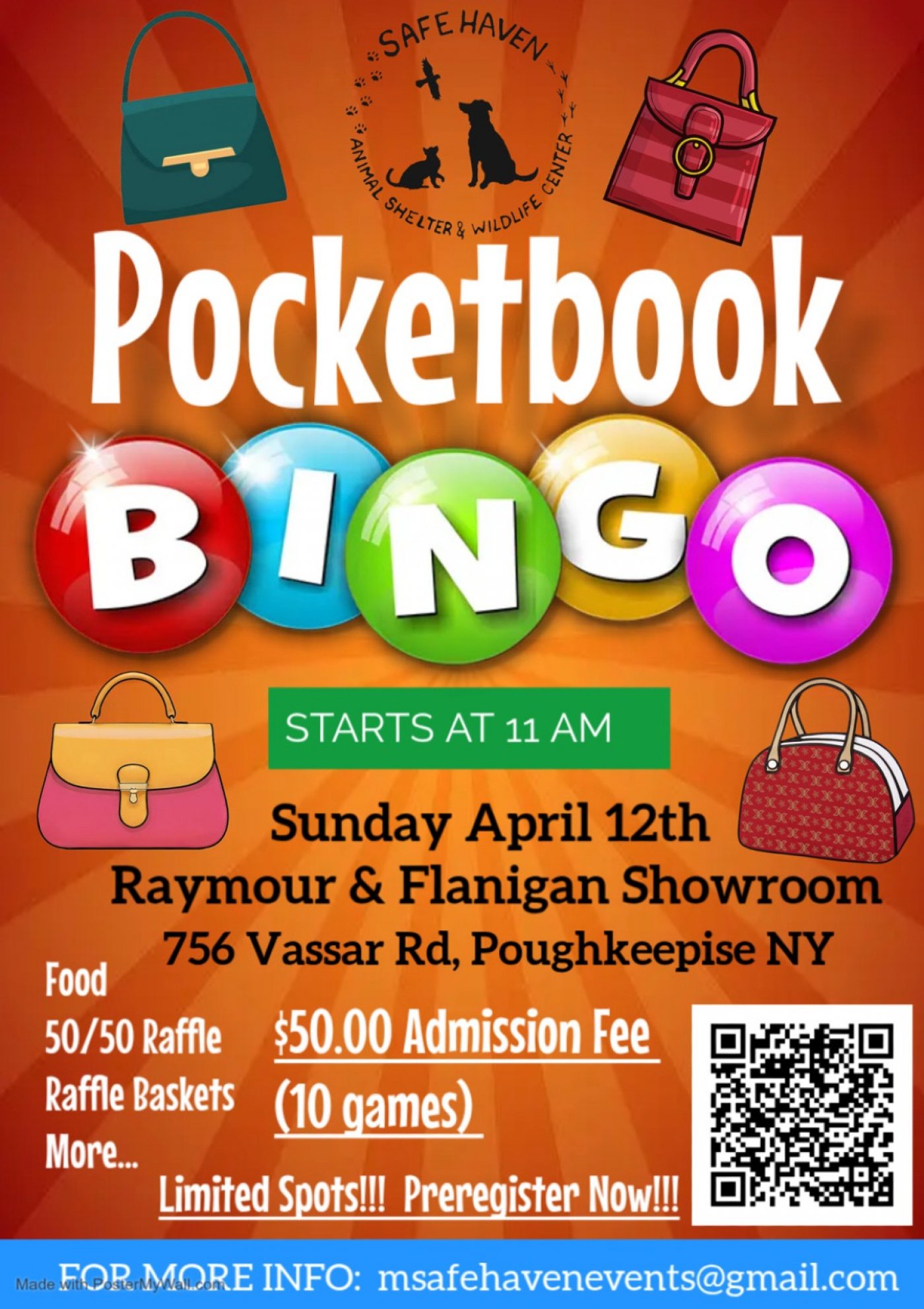 Fund raising event to benefit Safe Haven Animal Shelter & Wildlife Center, Admission $50 for 10 games for a chance to win designer handbags. More tickets can be purchased at the event. Drinks and snacks provided. Raffle baskets. Seating is limited. Advise registering in advance. For additional information contact Matt at [email protected].