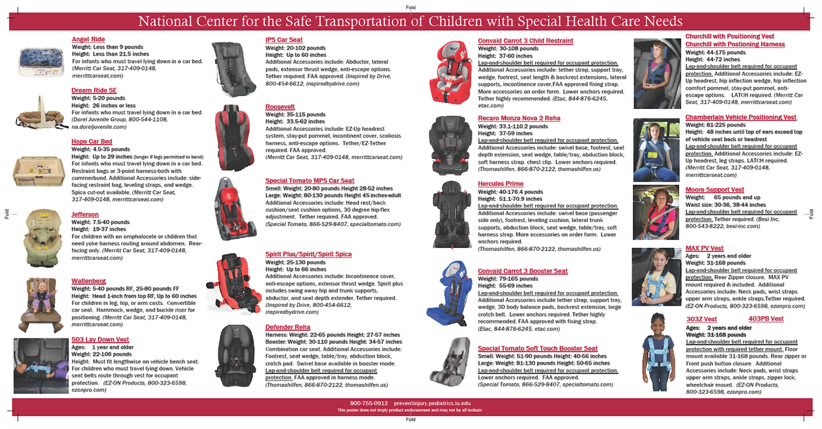 Safe Travel for All Children is designed to serve as an enrichment course for child passenger safety technicians who are interested in learning more about adaptive transportation. The training, which lasts two days, combines classroom lectures and discussions with hands-on exercises. During the training, participants will be introduced to medical conditions that can impact restraint selection and have the opportunity to investigate and install adaptive restraint systems. The training concludes with a proficiency exam that evaluates the student’s ability to assess appropriate restraints and to demonstrate proper use and installation.