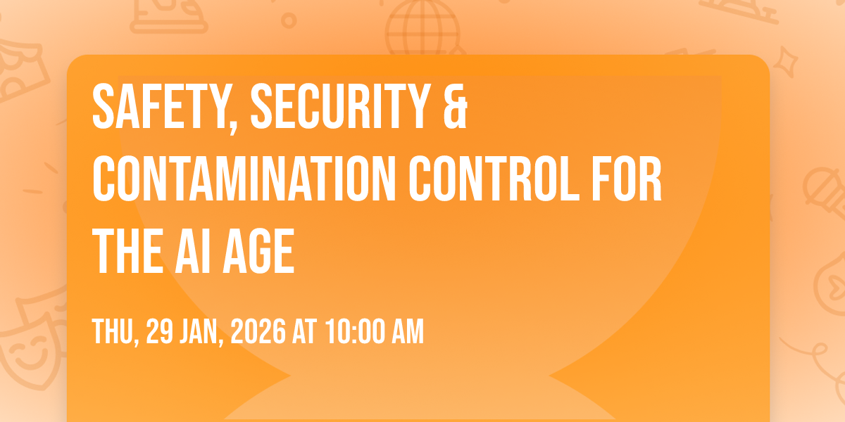 This event is all about safety, security and contamination control in the AI Age.
