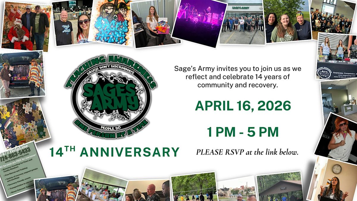 Join us as we celebrate 14 years of Sage's Army with a day filled with speakers, food and reflection and growth.