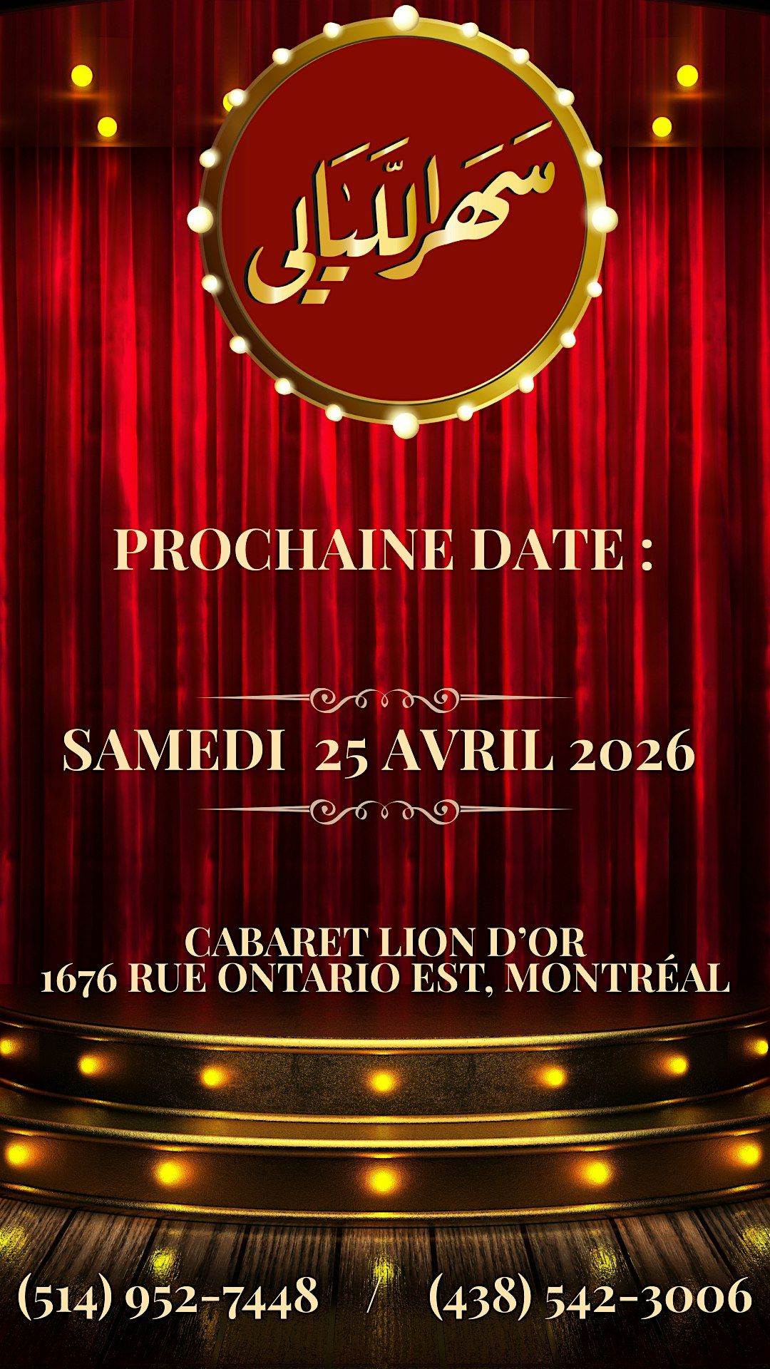 Envie d'une nuit magique sous le signe de l'Orient ? Rejoins-nous pour Sahar Layali, une soirée unique en son genre, pleine de musiques envoûtantes, de danses sensuelles et d'une ambiance chaleureuse. C'est l'occasion parfaite pour se détendre, rencontrer de nouvelles personnes et voyager le temps d'une soirée en plein cœur des traditions orientales. Tout ça en **présentiel**, pour vivre l'expérience à fond ! Ne manque pas ça, vivement la soirée !